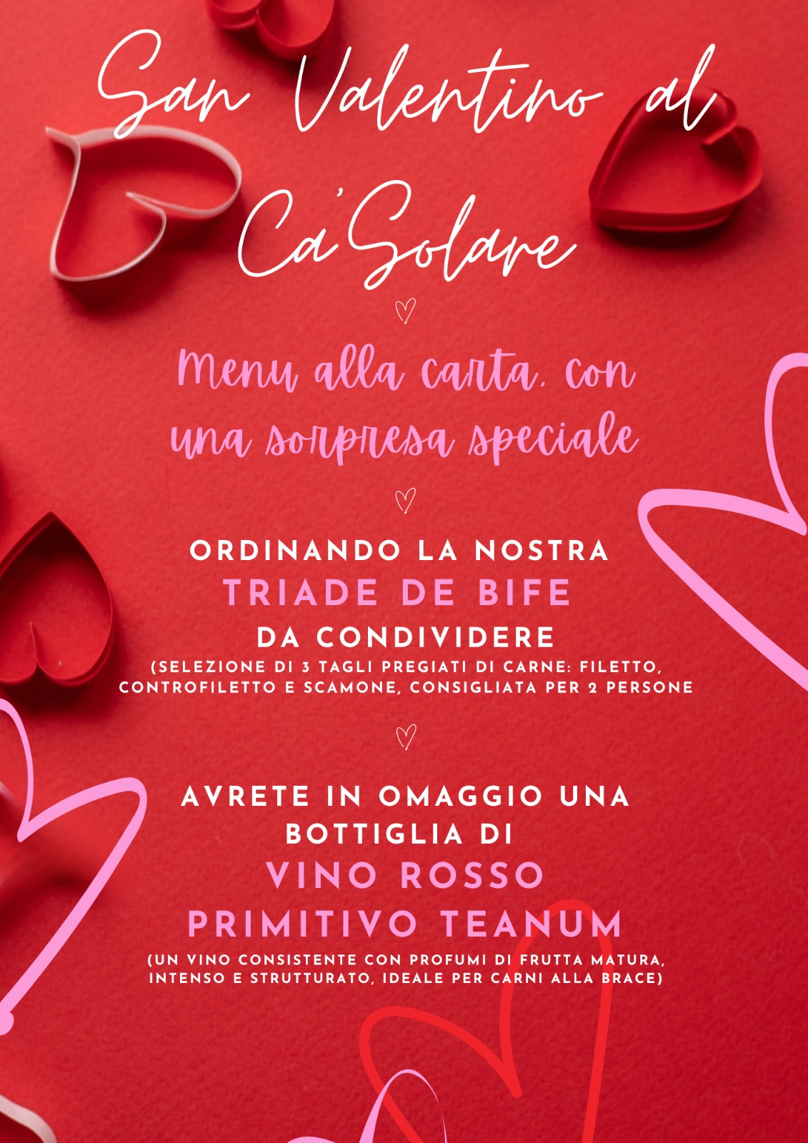 San Valentino al Ca’Solare Menu alla carta... e una sorpresa speciale